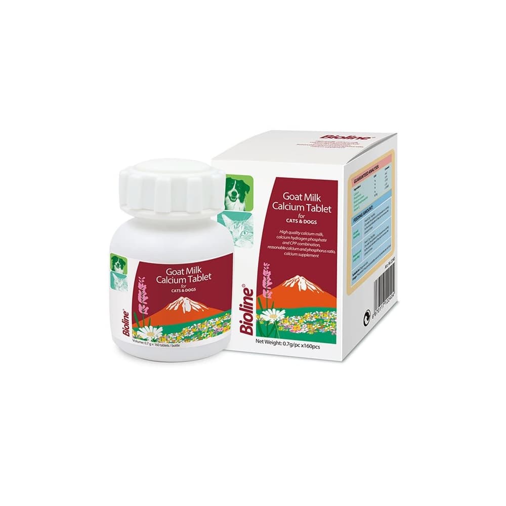 بيولاين- أقراص كالسيوم مع حليب الماعز للقطط والكلاب، 160قرص