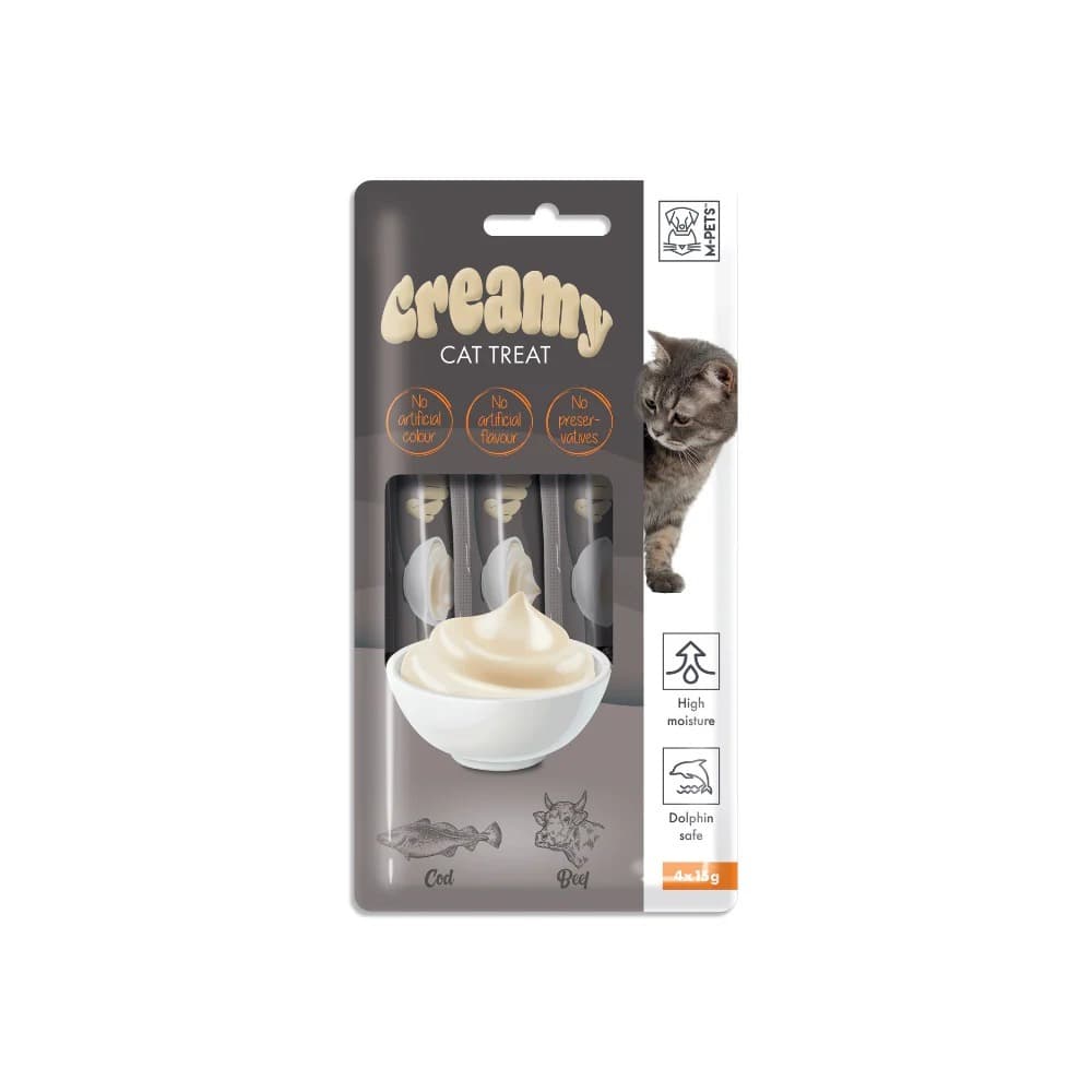 ام_ بتس- مكافأة للقطط كريمي سمكة القد مع اللحم البقري 4عصا 15جم