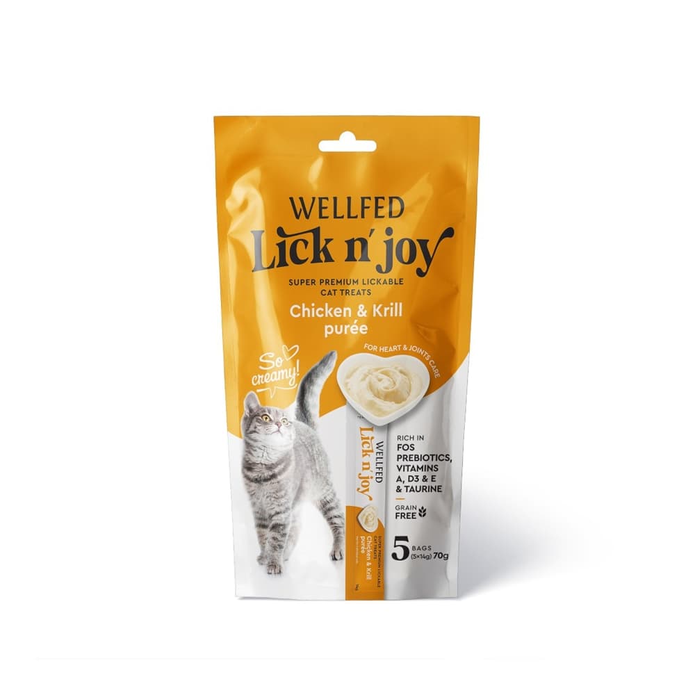 ويلفيد ليكنجوي- مكافأة للقطط كريمي الدجاج مع الكريل 5عصا 70جم