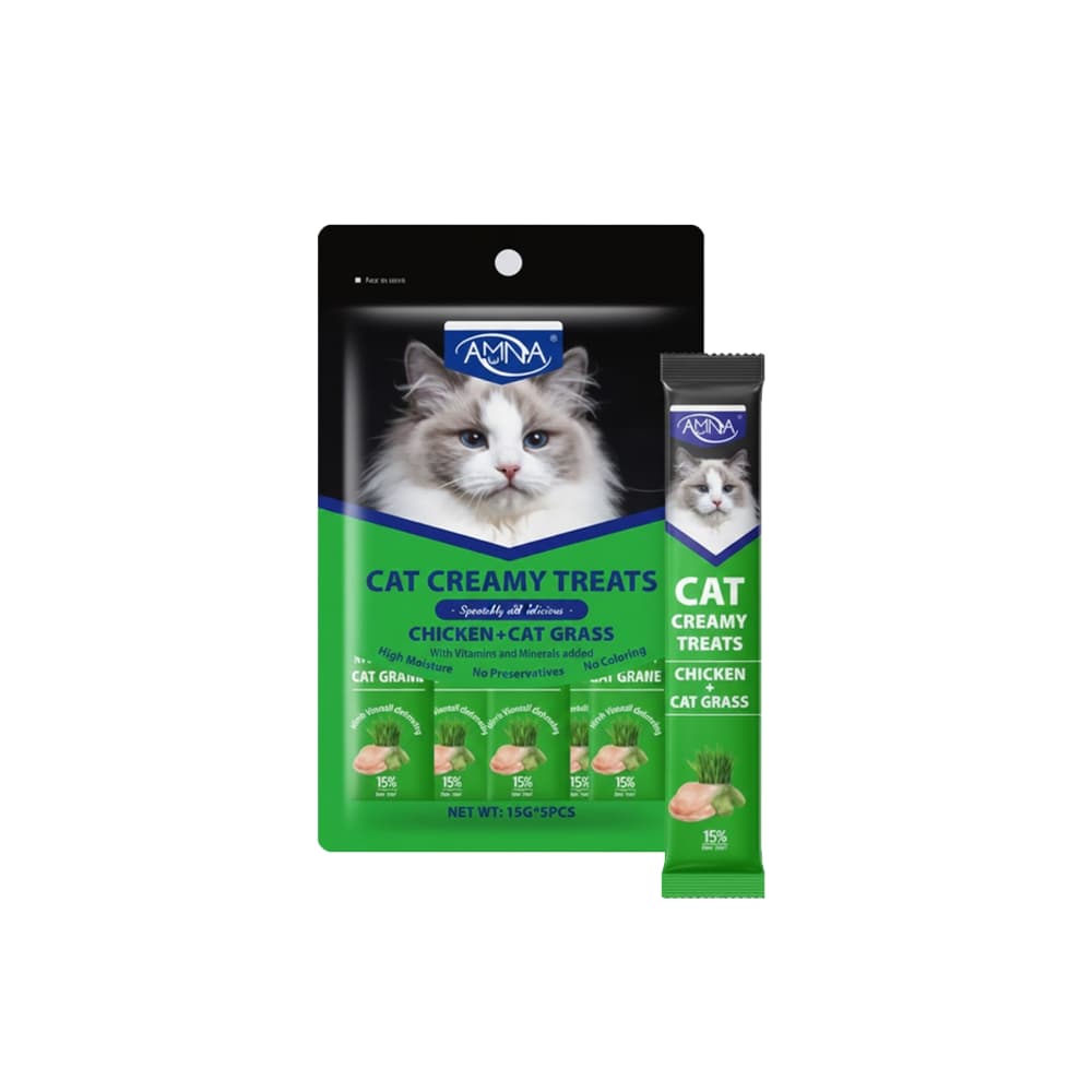 AMNA -Creamy Cat Treats Chicken with cat Grass 5 Stick 15g
